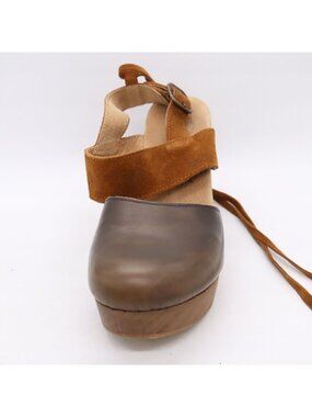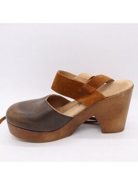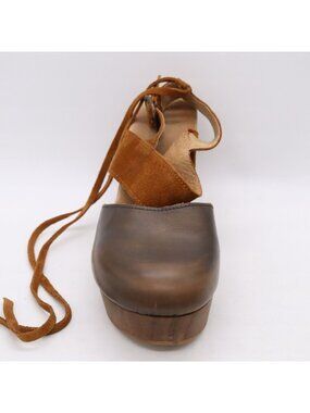 Free People Belmont Brown Leather Ankle Strap High Heel Clogs Women's Sz 36 / 6