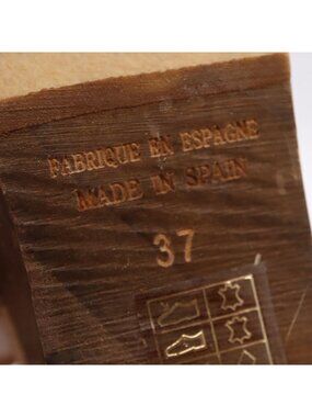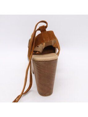 Good pre-owned condition. There are minor blemishes. Features a functional buckle, wrap ankle straps. The heel is 3.5" and a 1" platform sole. Genuine leather and suede made in Spain. Please see photos.