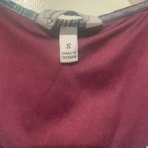 Stylish chevron patterned dress with long sleeves. Features a mix of blue, purple, and brown colors.