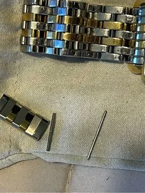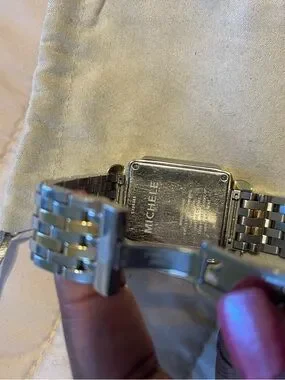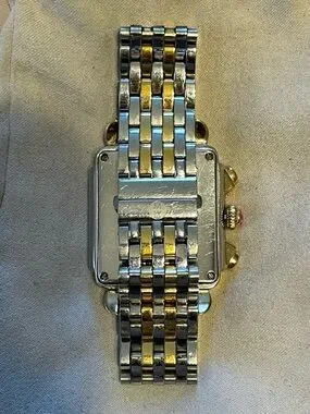 Michele Two-tone diamond Deco watch, metal bracelet. White dial with subdials and diamond hour markers. Some scratches, no box.