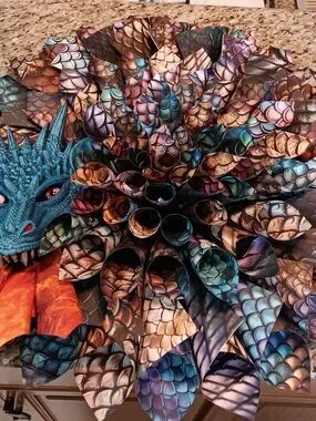 Dragon Mum - Dragon Scale Paper Cone Art With Blue Dragon Face And Wings