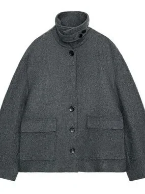 Stay stylish and warm with this elegant gray wool-blend coat from Zara—a versatile outerwear piece designed to elevate any cold-weather look.