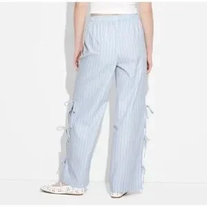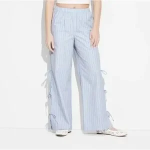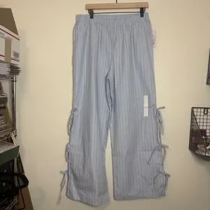 Women's Large Wide Leg Pants Target Blue Striped Tie Detail High Waist New
