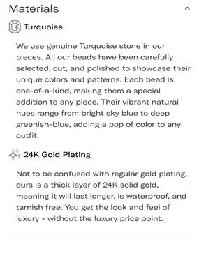 Mayamar Pastel, 24 karat gold and Real Turquoise Beaded Necklace NEW $108 MSRP