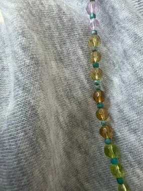 Mayamar delicate pastel and real turquoise beaded necklace.. Features multicolor soft blue, pink, amber and yellow and green beads alternated with smaller turquoise with 24 karat gold dipped links and extender for a subtle ethereal look. Lightweight and versatile styling that complements neutral and colorful outfits. This is such a special piece!