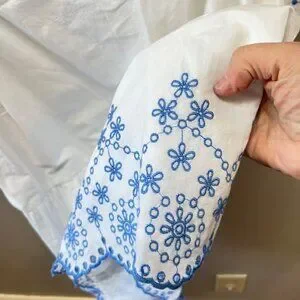 Color: white with blue embroidery