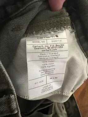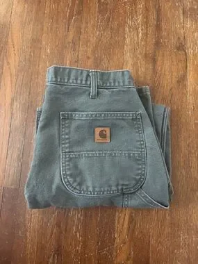 Rugged Carhartt cargo pants with multiple utility pockets. Heavy-duty canvas feel for work and outdoor wear. Straight leg with reinforced pocket details. Subtle Carhartt logo patch on back pocket.