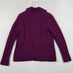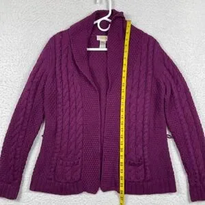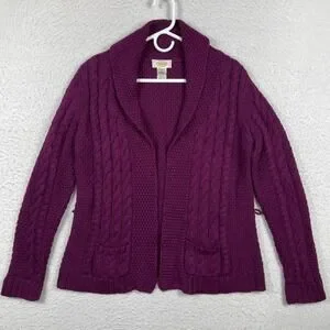 Talbots Sweater Womens Medium Purple Cable Knit Shawl Collar Cardigan Vintage
