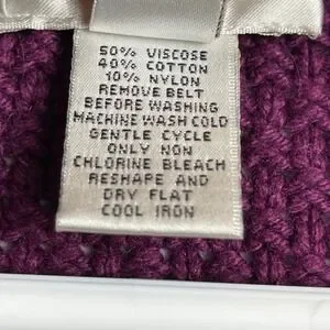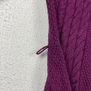 Keywords: Talbots, women's cardigan, purple sweater, cable knit, shawl collar, pockets, cozy, elegant, layering, classic, fall fashion, winter wear