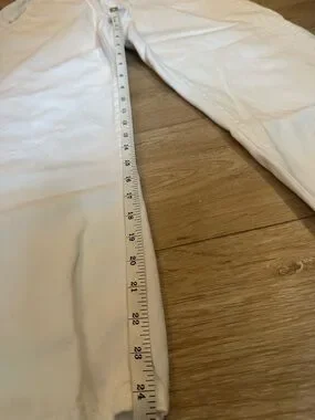 Crisp white paperbag waist pants. High-waisted silhouette with belt loops and side pockets. Clean, versatile piece for casual or dressed-up looks. #memorialweekend #allwhite #y2k #baggyjeans
