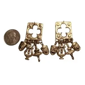Excellent pre owned condition. Vintage - Gold Theater Inspired Charm Statement Earrings. Pierced posts. Masks, harp and Ballerina charms. Will not tarnish.