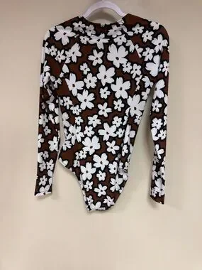 Hurley Brown White DAISY Floral Long-Sleeve One-Piece Swimsuit NEW WITHOUT TAGS