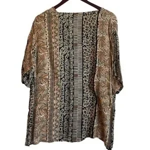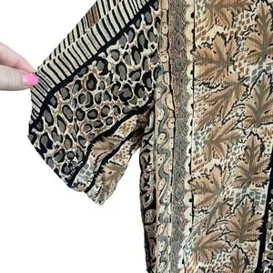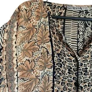 Vintage Kloz Animal Print Tribal Stripe Tunic Blouse Earth Tone Boho Artwear Top