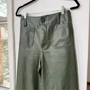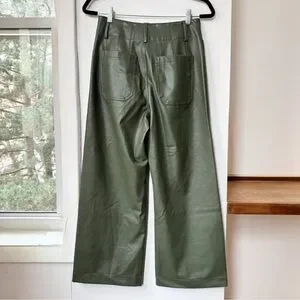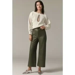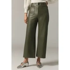 New Anthropologie The Colette Faux Leather Crop Wide-Leg Pants Maeve 28 Green