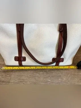 👜 Dooney & Bourke Pebbled Leather Tote Cream Brown Trim Large Shoulder Bag