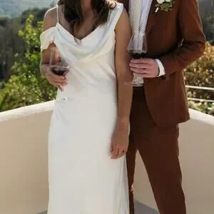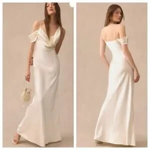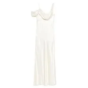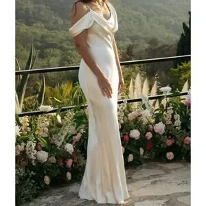 Brand new Reformation Ronda Silk Dress in ivory, size 4. A stunning choice for ceremonies, receptions, and pre-wedding events. Crafted from 100% silk with an elegant asymmetrical one-shoulder neckline, soft cowl draping, and a flowing bias-cut skirt that creates a subtle A-line silhouette. Unlined, pullover style, and falls approximately 70" from shoulder to hem. A timeless, elevated gown perfect for brides or any formal occasion.
