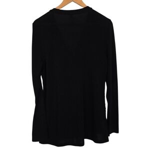 Elegant black knit button down cardigan sweater. Ideal for versatile styling.