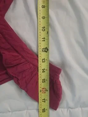 Elevate your everyday style with this charming and feminine tank top from LOFT. Featuring a beautiful deep berry/magenta hue, this blouse is crafted from lightweight rayon with a delicate dobby texture (small raised patterns) that adds depth and visual interest. The standout feature is the elegant ruffle trim along the V-neckline, which extends over the shoulders for a subtle cap-sleeve effect. Perfect for layering under a blazer for work or pairing with denim for a casual weekend look.