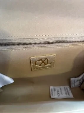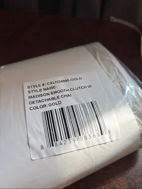 This item is new in the packaging. The color is listed as gold, but it isn’t crazy sparkly. It’s just a very nice neutral.