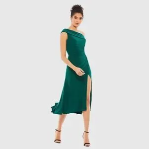 MAC DUGGAL 26484 Womens Green Ruched Off-The-Shoulder Midi Dress