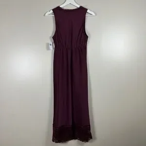 Old Navy Women's XS Slip Dress Burgundy Lace Trim V-Neck Midi NEW