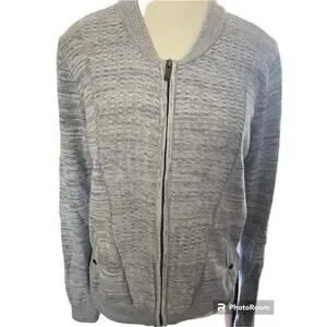 Calvin Klein Zip Knit Bomber Jacket Women’s L Grey Minimalist Quiet Luxury