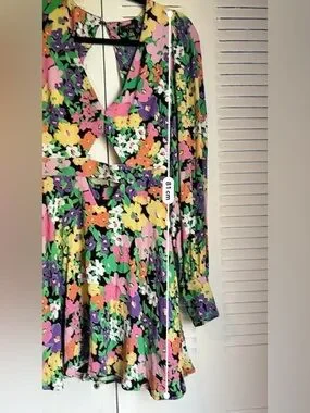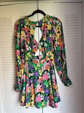 AFRM Floral Cut-Out Mini Dress Open Back Long Sleeve Size S Spring Summer