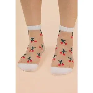 "- Cherry Embroidered Mesh Ankle Socks