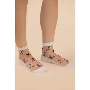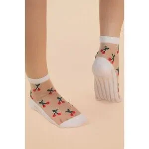 SC10033A-1 W Very J Cherry Embroidered Mesh Ankle Socks White One Size