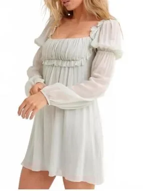 Worn once, rumored size med sage mini dress. So cute with princess sleeves and a smocked back. Super flowy and perfect for summer events