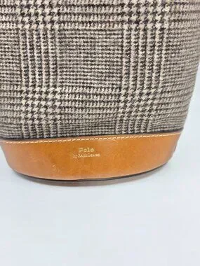 Polo Ralph Lauren Wool Glen Plaid & Suede Bucket Bag MSRP $548