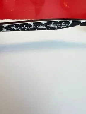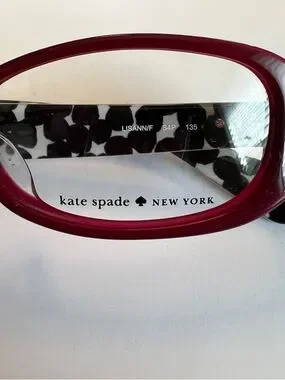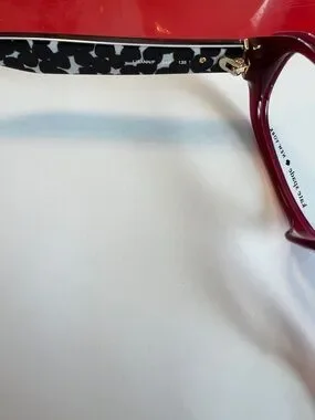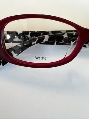 kate spade burgundy front with black-and-white patterned temples eyeglasses