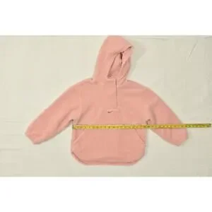 The Nike Therma-FIT Pink Pullover Sherpa Hoodie in size M for kids is a stylish and cozy sweater perfect for casual occasions during the winter, fall, and spring seasons. Made of polyester fleece fabric, this long-sleeve hoodie features a solid pink color with the brand logo as accents. The pullover style and regular fit make it comfortable and easy to wear, while the machine washable design ensures easy care. Ideal for women looking for a warm and fashionable addition to their wardrobe.