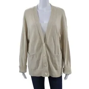 525 Unisex Cardigan V-Neck Button 100% Cotton Beige Long Sleeve Size M