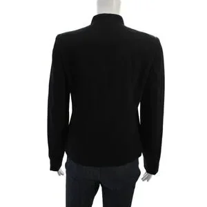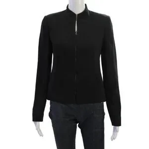 Philippe Adec Womens Black Polyester Mock Neck Blazer Zip Long Sleeve Size 4