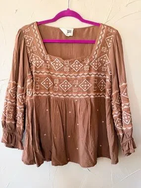 Savanna Jane Brown Embroidered Square-Neck Top size 1X