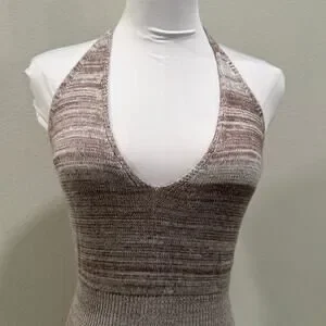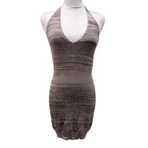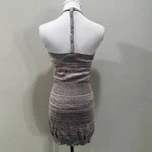Sans Souci Halter Knit Mini Dress Brown Neutral Stretch Bodycon Large Vacation