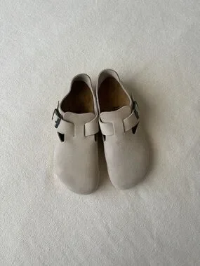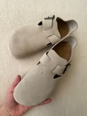 One of the first closed-toe styles from BIRKENSTOCK, The London is the epitome of simplicity with clean lines and an adjustable buckle strap. The iconic footbed provides signature comfort and support. With an easy fit and feel, it boasts a natural, rustic look with a soft suede upper