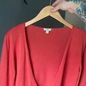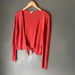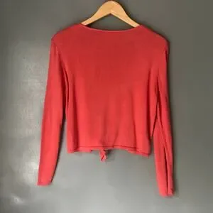 J. JILL Women's MED Salmon Pink Silk Blend Tie Front Cardigan Summer Lightweight