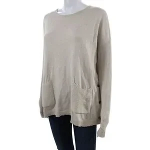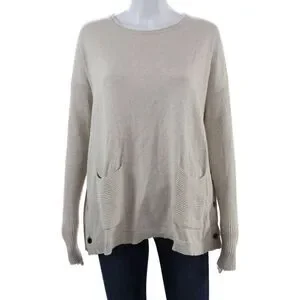 Lisa Todd Unisex Beige Pullover Sweater Long Sleeve Cotton Cashmere Size L