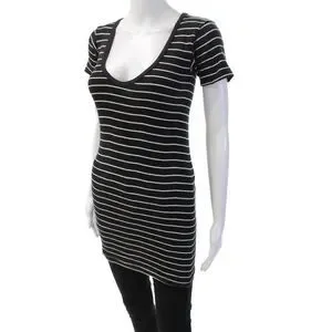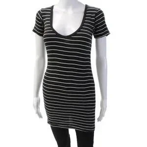 Edith A. Miller Women Striped Black Cotton Blend T-Shirt Dress Size S