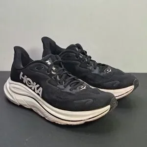 Hoka Men Clifton 10 Size 10.5 Black White Mesh Running Shoes 1162030 BWHT