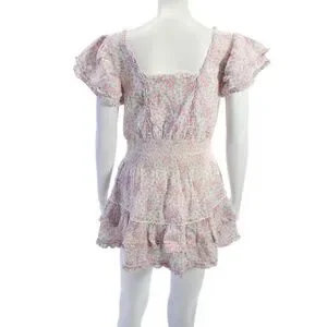 Love Shack Fancy Womens Sundress Pink Cotton Square Neck Short Sleeve Size S