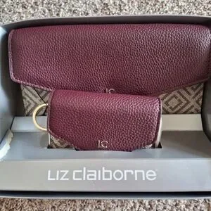 Liz Claiborne Plum Pebbled Leather Wallet and Key Card Case Set