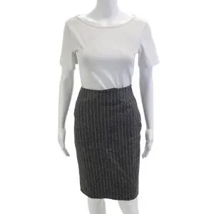 Escada Womens Straight Pencil Mini Skirt Dark Gray Striped Wool Size 36