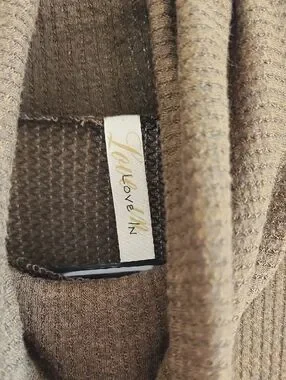 Sleeveless tunic with a relaxed cowl neck. Soft ribbed knit fabric. Flowy A-line drape. Simple pull-on design. Great for layering or casual wear.