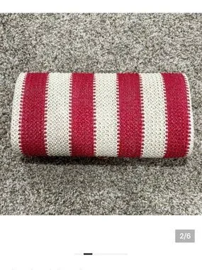 RED/WHITE STRIPED CLUTCH WITH GOLD CROSSBODY STRAP - UNBRANDED
