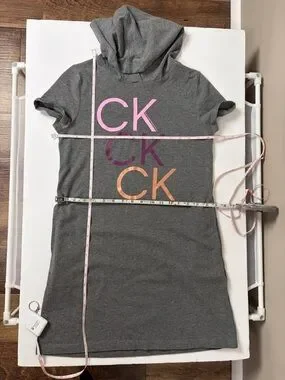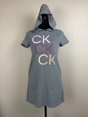 Calvin Klein Performance Gray Hooded Sweatshirt Dress CK Logo Girl XL/16 Pockets