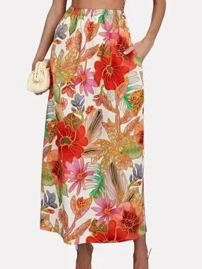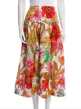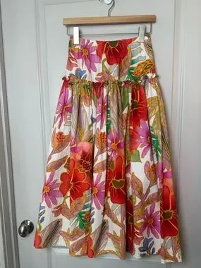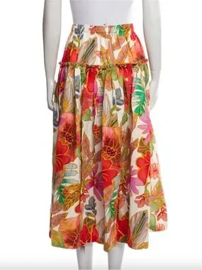 Mara Hoffman Bettina Floral Organic Cotton DropWaist Ruffle Maxi Luxury Skirt,XS