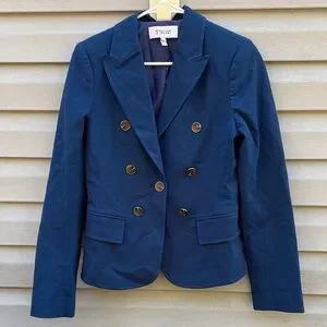Derek Lam 10 Crosby Eliza Double Breasted Blue Stretch Cotton Jacket size 4. Notch lapel. Long sleeves with button cuffs. Double breasted button front. Waist flap pockets. No rips stains or tears.